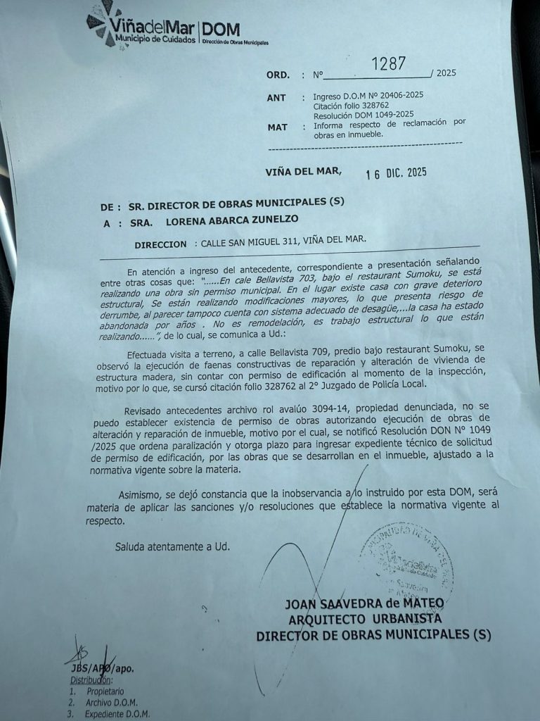 Una situación de extrema gravedad quedó al descubierto tras la emisión del oficio ORD. N° 1287 de la Dirección de Obras Municipales (DOM). Lo que se promociona como una fiesta exclusiva en el sector de «Calabaza» (bajo el Restaurant Sumoku, en Bellavista 703-709), es en realidad un evento que desafía las órdenes judiciales y pone en peligro la vida de los asistentes.
